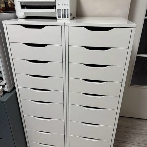 Alex - kommode fra IKEA selges. Pent brukt og i god stand. Er et lite merke på innsiden skuff nr 4 der litt maling har flasset av, men det er ikke synlig utenifra og påvirker ikke skuffens funksjonalitet. Må hentes
