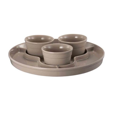 Kjekt tapasfat med skåler som kan brukes til tapas eller snacks, el lignende. Se siste bilde for dimensjoner. Esken medfølger