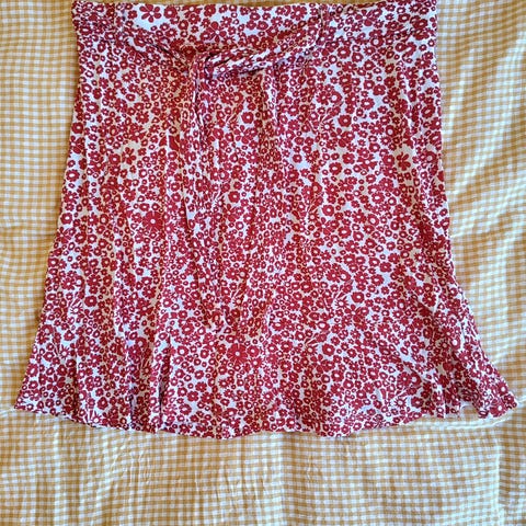Even&Odd skjørt i størrelse S, laget av viskose. Skjørtet har en rød farge med et mønster av små blomster.