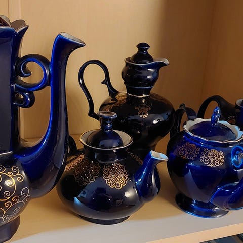2 store kanner, en, Kiev fin og hel 450 kr,den andre har en liten skål, den er ikke synlig når kanne står på bordet, H er 24 cm på begge, pris 260 kr.+ porto