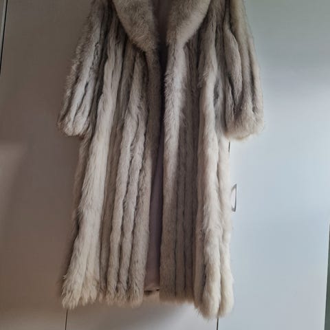 Luksuriøs pels i str 40 (cirka 123 cm lang) fra 1990-tallet selges til høystbydende over 12 000 kroner.