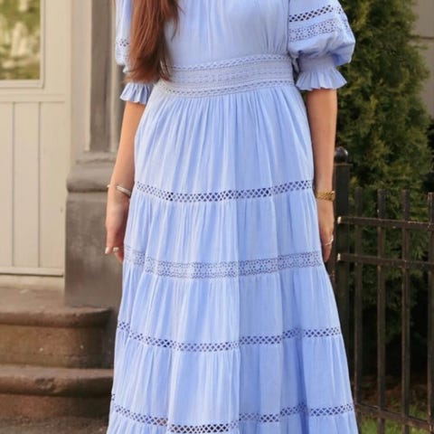Selges ubrukt kjole i nydelig oransje farge da jeg innser at jeg ikke kommer til å bruke den så mye som ønsket. Midi/maxi avhengig av høyde. Splitt i siden. Nypris 1299.
