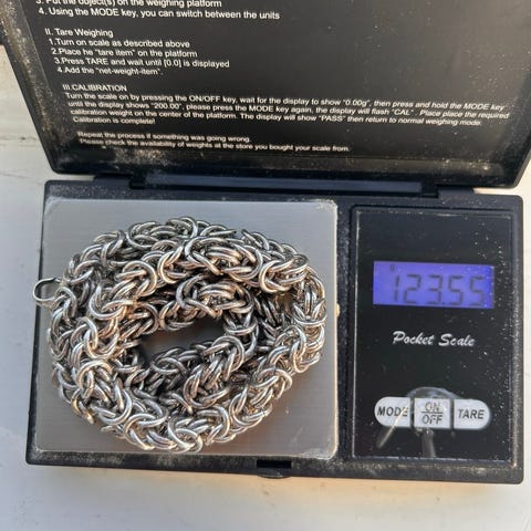 Pent brukt kongekjede selges, er stemplet med 925. Tilsvarende likt kjede koster rundt 7000 kroner, ganske skjeldent skjede. 52 cm langt og 7 millimeter bredt, vekt 68 gram. Pris kan diskuteres.