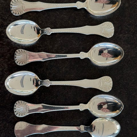Selger 5 kaffeskjeer i det klassiske norske sølvmønsteret Lilje, utført i 830S sølv. Meget pent brukte.