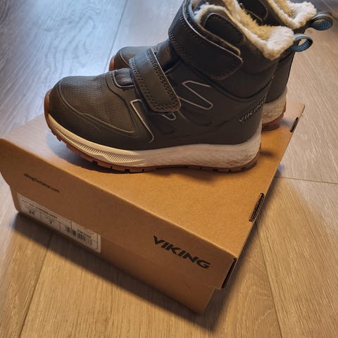Viking barnesko for gutt i størrelse 36. Skoene har en kombinasjon av tekstil og syntetisk materiale, med Gore-Tex membran for vanntetthet. Designet med borrelås og lisser for justerbar passform. Yttersålen er laget av gummi for godt grep.