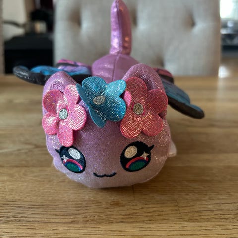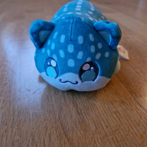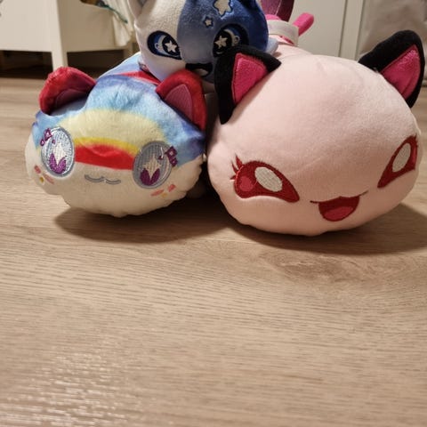 Aphmau bamse myk leke i oransje og gult materiale. Egnet for barn som en kosedyr eller samlerobjekt.