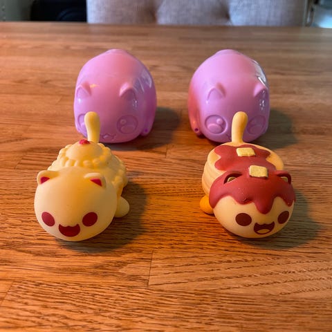 Aphmau lekedyr i plast, en rosa og en blå, med detaljer som ben og hale. Passer som leketøy eller dekorasjon.