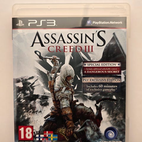 Pent og komplett utgave av Assassin's Creed III til PS3. DLC-koder kan være brukt/utløpt da spillet selges brukt.