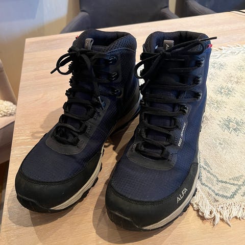 Flotte tursko/fjellsko. De er fire eller fem år, men relativt lite brukt da de ikke har passet meg godt nok til lengre turer. Har byttet skolisser en gang. Skoene er lette, solide og enkle å vedlikeholde. Mye bruk igjen.