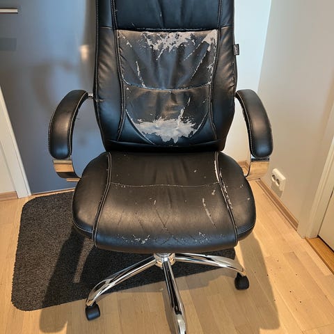 Eldre kontorstol gis bort. Fungerer som den skal men bør trekkes om