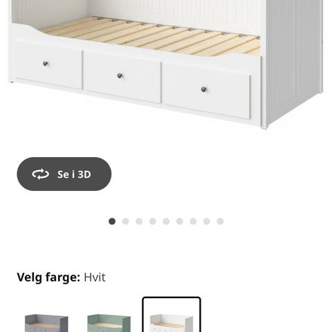 IKEA seng med oppbevaringsskuffer i hvit farge. Sengen har integrerte skuffer under for ekstra oppbevaringsplass. Passer for ulike rom og kan brukes som både seng og sitteplass. Daybed kan dras ut og gjøres om til dobbelseng. 180 cm bred når den trekkes ut. Madrasser følger med. (2 x 90 cm Malvik madrasser)
