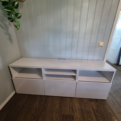 3 stk BESTÅ veggmontert skapkombinasjon brukt som tv-benk. Kan monteres på vegg, men det er også mulig å få tak i ben som kan monteres slik at den kan stå på gulvet. Selges grunnet flytting.