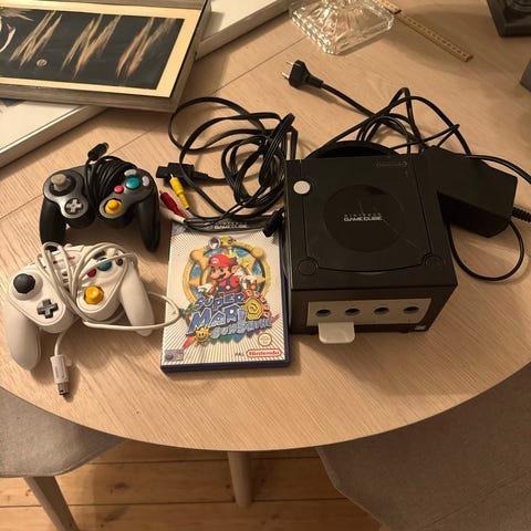 Gamecube med alt som trengs til å fungere, orginal kontroll, nytt/uåppnet minnekort 4mb, strøm og TV kabel med skart.