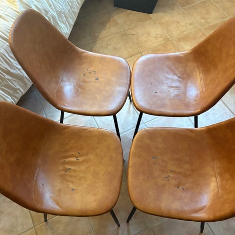 Hele og pene spisestoler gis bort. To av de er litt skeive i ryggen. Tror de er knekt. Må hentes.