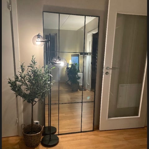 Buede speil 3 stk . Festes på veggen med enkel innfesting. Høyde 160 cm, bredde pr speil 20 cm. Total veggplass ca. 70 cm i bredden. Må hentes da det ikke er hensiktsmessig å sende speil på forsvarlig vis.