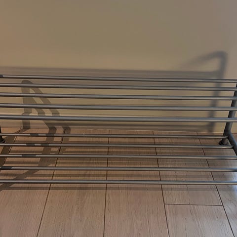 Skohylle ukjent merke, muligens IKEA selges for 50kr. Plass til 6 par sko.