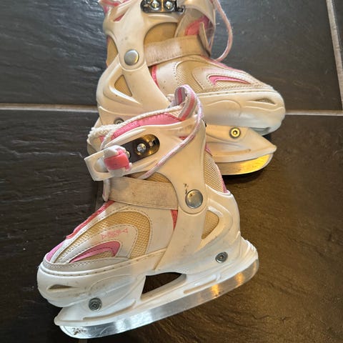 Barneskøyter i størrelse 27 med hvit farge. Skøytene er designet for barn og har snøring for justering. Egnet for bruk på isflater til skøyting.