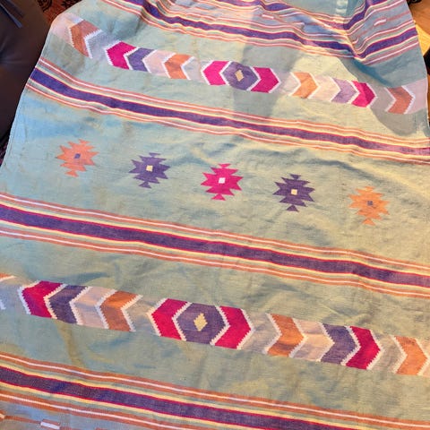 Pledd fra Mexico i ull selges (ca 113 x 200 cm).
