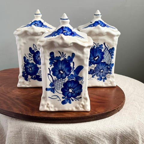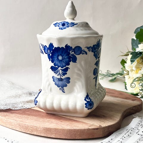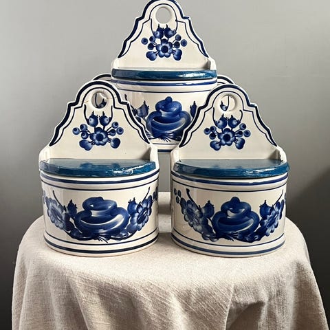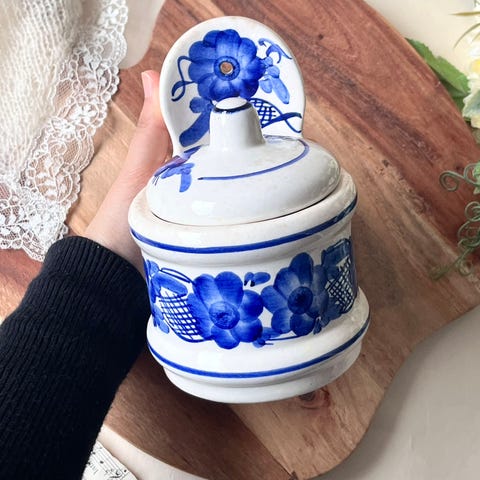 søkeord: dekor dekorasjon decor decoration pynt interiør pyntegjenstand kjøkkenpynt landlig landstil cottage core veggpynt vegghengt blomster blomsterdekor blomstermønster blomstermotiv blomst retro blå hvit hvitt kvit blomster saltkrukke saltboks hyttepynt hytte hytta kjøkken kjøkkenutstyr kongeblått marineblå blått melkar saltkar kar mel salt