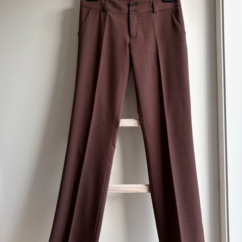 Riccovero Style bukser i beige farge, laget av viskose og polyester. Bukser for dame i størrelse 38. Designet med knapp- og glidelåslukking, egnet til formelle og hverdagslige anledninger. Brukt kun en gang.