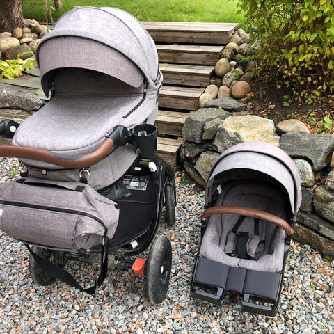 Stokke trailz med sort understell og skinn håndtak.