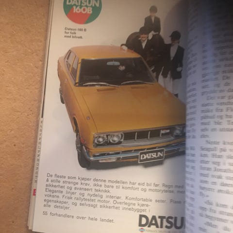 Gammel Datsun forhandler reklame. Kvalsund motorcenter. Korkåpner. Leif M Sivertsen. Kvalsund.