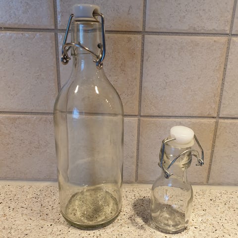 Selger 4 gjenbruk are glassflasker på 1L hver
