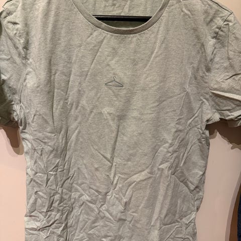 Holzweiler T-skjorte i hvit farge, størrelse S for herre. Laget av bomull. Produktet har en dekorativ håndprint på baksiden. Passer perfekt til personer som bruker M