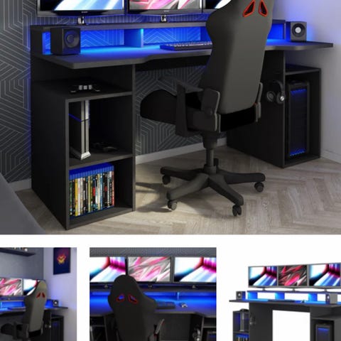 Solid og pent brukt gamingpult. Noen riper i ytterkant som er dekket til med møbeltusj. Se bilder.