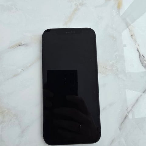 Apple iPhone 12 med 64 GB lagringskapasitet. Telefonen har skjermbeskytelse foran vært alltid på. Bak er den knust men har ingen betydning. Funker som den skal og har 77% batteritilstand
