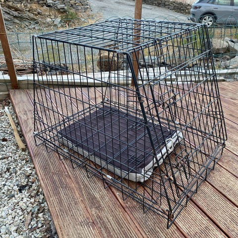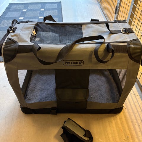 Metallbur for hund med svart farge. Bur med dør og avtakbar plastbunn for enkel rengjøring. Egnet for transport og oppbevaring av hunder.
