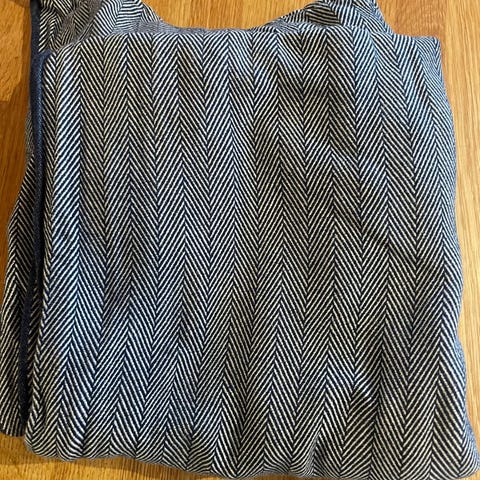 Størrelse 7 (5,2 m) passer til både nyfødt og toddler. Mykt, lett og knyte og lite brukt. Teppe i lilla og beige hundetannmønster.