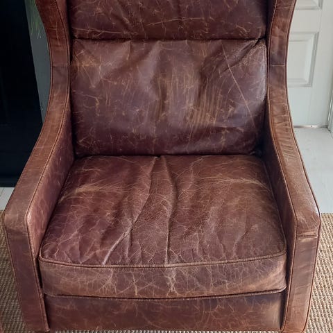 Selger en fin stol m/ puff fra Brunstad.