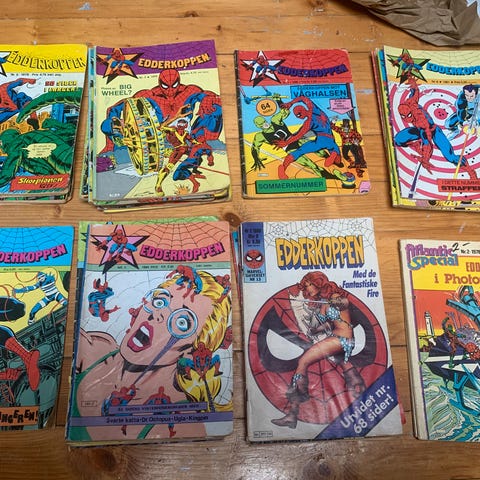 Samling med Norske Edderkoppen pocketbøker selges.GRATIS FRAKT!! Tegneseriene er lest og har slitasje.Selges som dem er.Noen av pocketbøkene er av noe bedre stand enn dem andre.