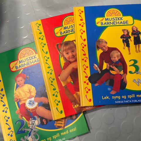 Min egen musikk barnehage 1-3 Lek syng barn. 3 x stk bøker, flott illustrert og godt forklart fremgangsmåte. I god stand, men noe bruksmerker må regnes med. Se bilder.