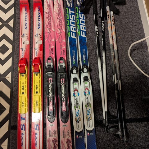 Frost barneski 110 cm med Rottefella binding. Godt brukt, men hel og fin. Må hentes.