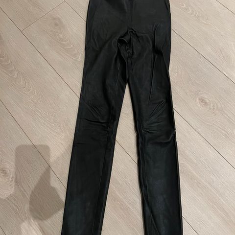 Tøft skinnskjørt i knelengde. Kun brukt noen få ganger, ingen merker. Fint til både fest og hverdags med en tykk ullgenser.