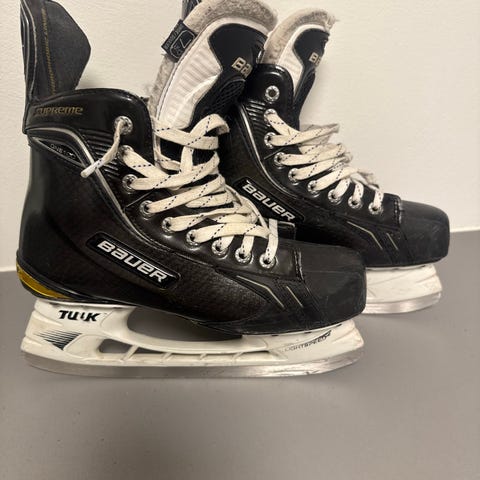 Bauer Supreme 1000 ishockeyskøyter i størrelse 40,5. Skøytene er designet for ishockey og har svart farge. De er laget for å gi støtte og stabilitet under skøyting på is. Må slipes.