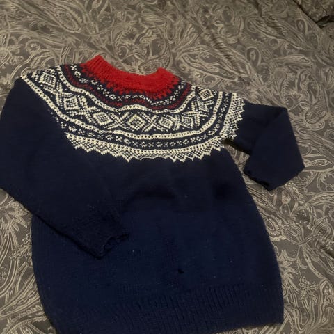 Marius genser hjemme strikka størlse barn mellom 3-4 år