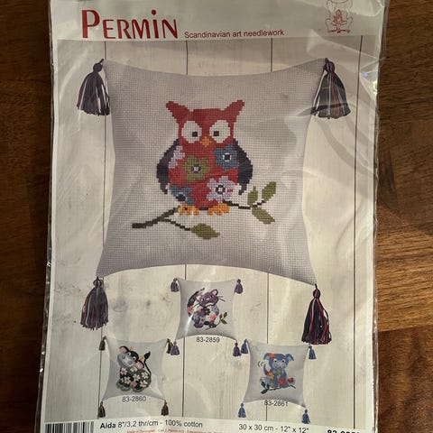 Olmedoabis broderisett med julemotiv. Settet inneholder mønsterark med fargerike julebilder og ulike fargetråder for brodering.