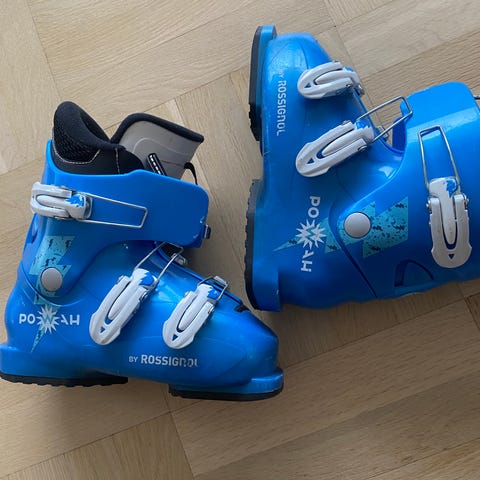 Selger et par Head Alpinsko for junior. Skoene er 221 mm lange, med mondopoint 170-185 (dvs de passer innvendig for en fot som måler mellom 170 og 185 mm) - skoene tilsvarer ca sko str 28.5/29.