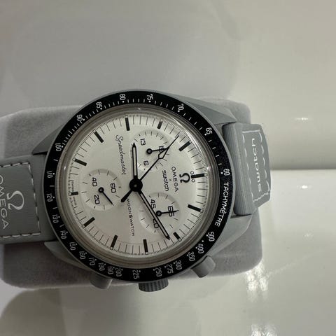 • Modell: Swatch x Omega MoonSwatch 1965 (Bioceramic, kronograf)