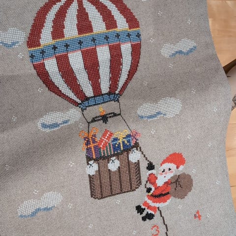 Juleduk 126x210 cm, "Julaften". Duken er kun pakket ut for å ta bilde av trådene.