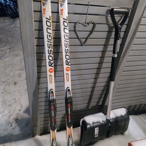 Skiene ble kjøpt nye i fjor, og kun brukt en gang. Medfølger staver i 75cm lengde