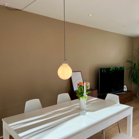 Stilren taklampe med mykt og behagelig lys. En ekte designklassiker som passer like godt i stue som over spisebord.