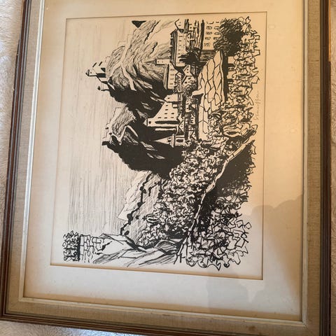 I 1979 utga Kiwanis mappe med tegninger fra Asker, innrammet.