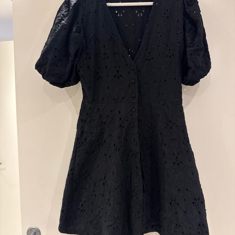 Zara svart kjole størrelse M, Kjolen har puffede ermer og snøring i ryggen.