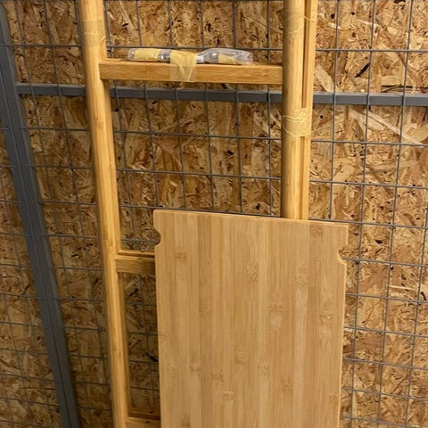 Selger lite brukt hjørnehylle i bambus fra IKEA. Ingen bruksmerker. Hyllen er brukt på et tørt rom, så den har ikke vært utsatt for fuktighet.