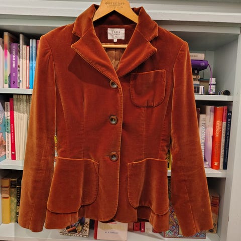 Pen jakke fra TARA brune nyanser, 97% Cotton( fløyelsaktig), med lommer og knapper, litt innsvinget modell.