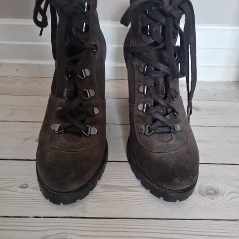 Sorte semskete Billi Bi foret med saueskinn med innebygd kilehæl. Pent brukt.